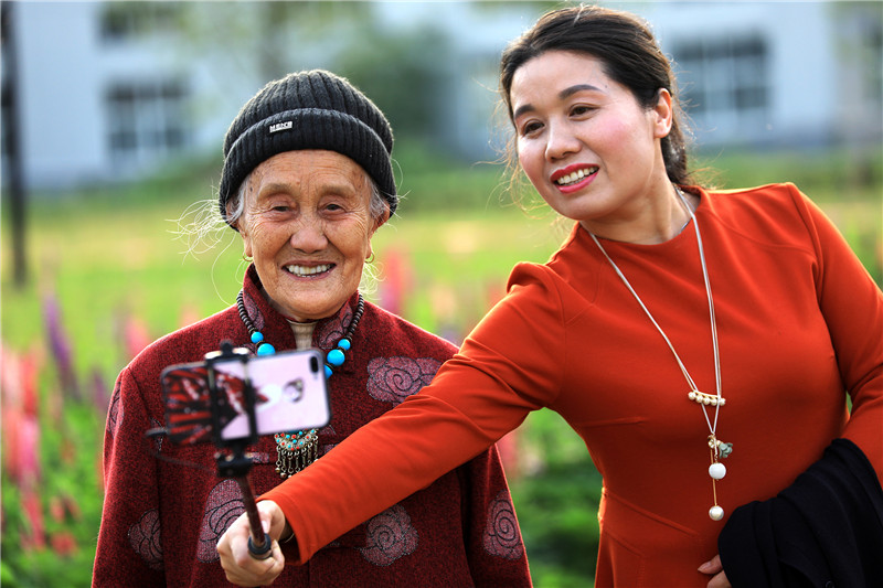 这位83岁的老人刚刚出院,她的女儿带她到郊外一起拍摄抖音,老人十分开心。(这组照片汉中白玉超提供)